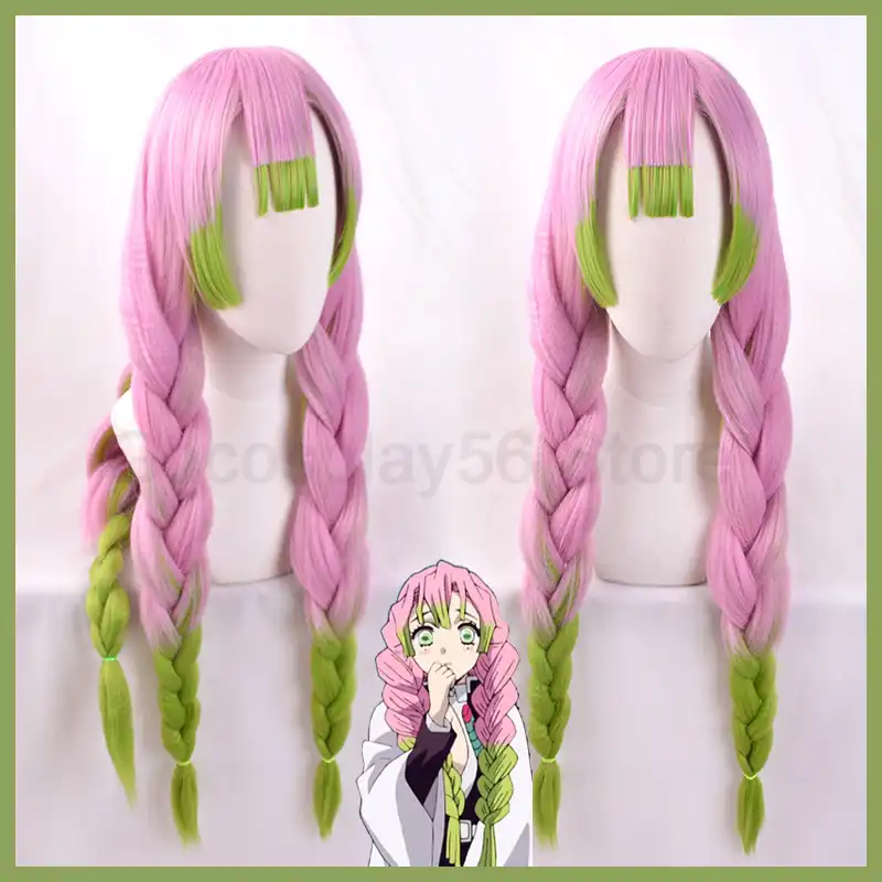 Lame De Demon Slayer Kanroji Mitsuri Degrade Couleur Cheveux Cosplay Perruque Kimetsu No Yaiba Rose Mixte Vert Jeu De Role Tresse Faciale Aliexpress