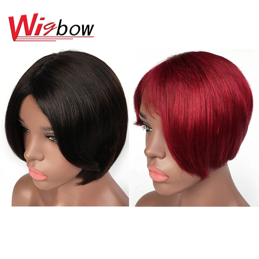 Perruque Bob Bresilienne Remy Naturelle Avec Frange Cheveux Lisses Coupe Pixie Cheveux Courts Bon Marche Pour Femmes Aliexpress