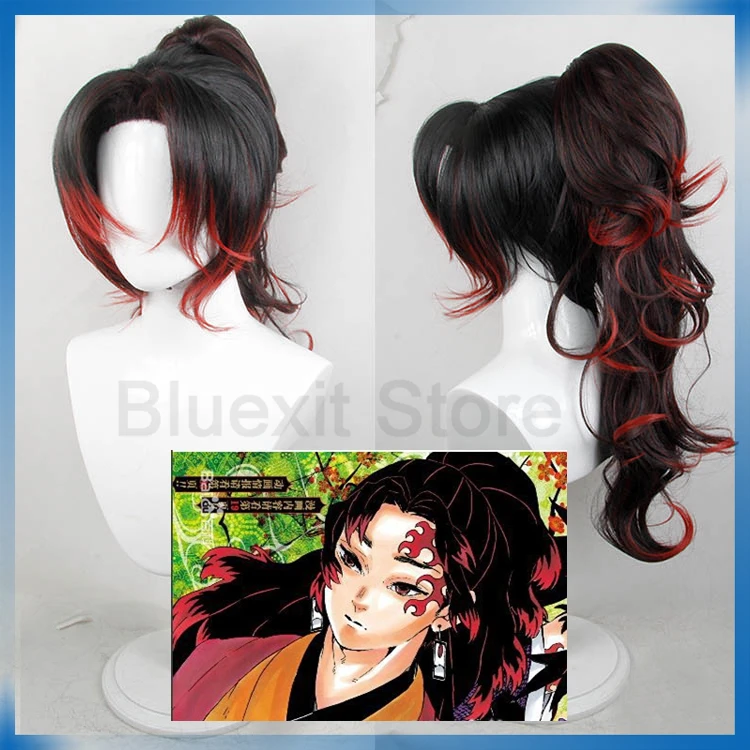 Kimetsu No Yaiba Tsugikuni Yoriichi Perruque Demon Slayer Queue De Cheval Longue Bouclee Degrade Noir Rouge Boucles Cosplay Cheveux Halloween Aliexpress