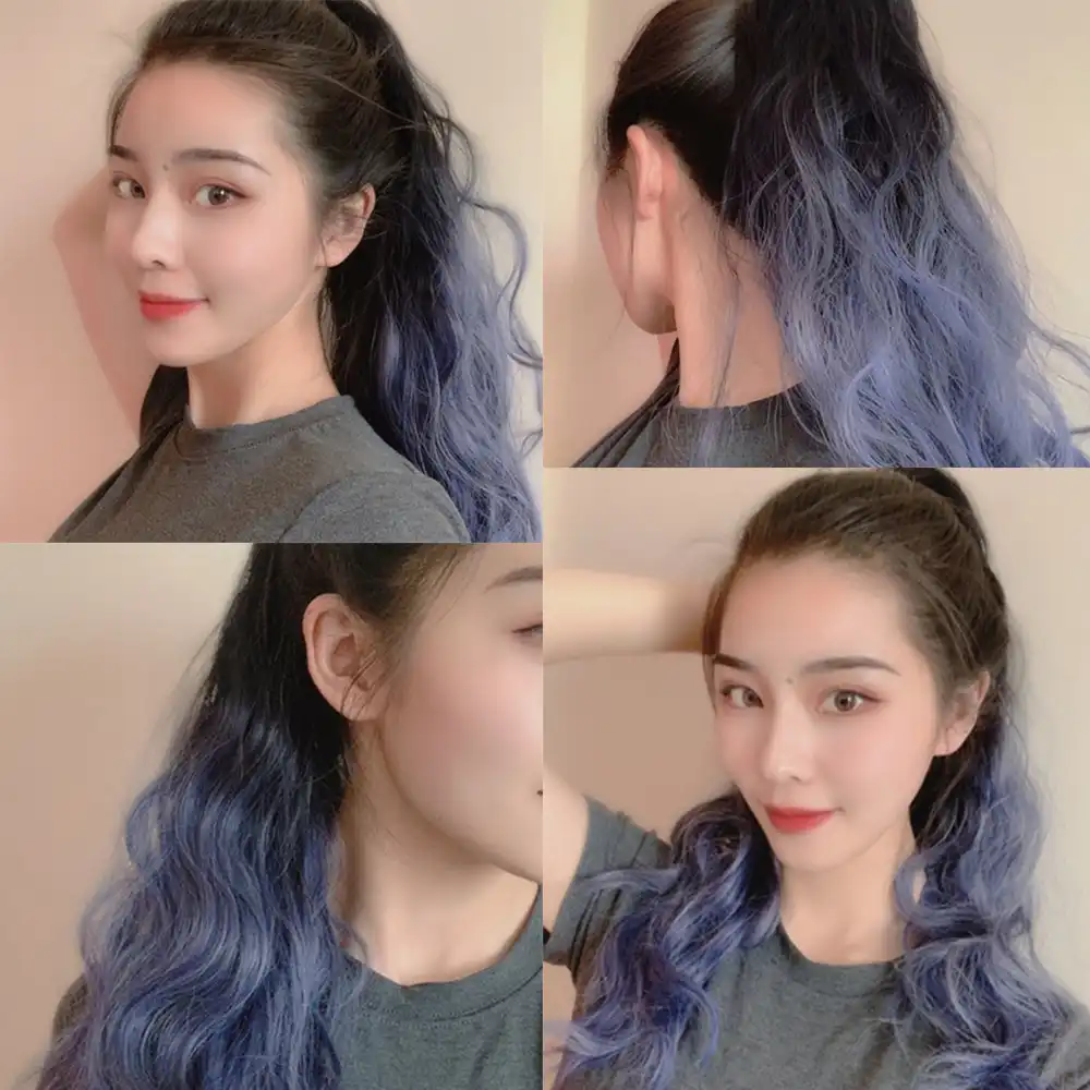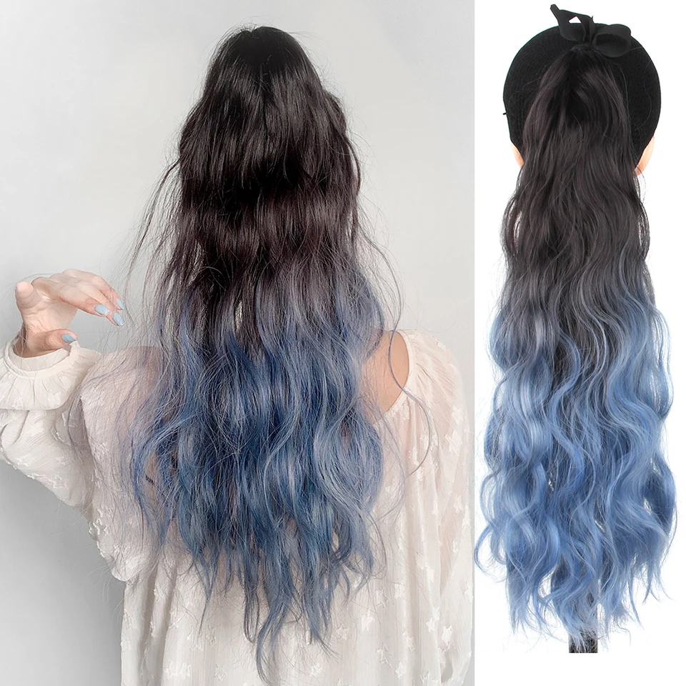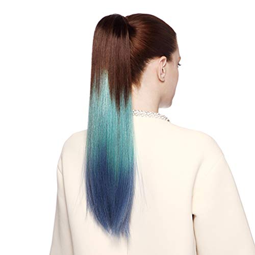 Mstn Extensions Queue De Cheval Bouclee Ombrees Degrade Accessoires Pour Cheveux Colores Bleu Et Brun Melanges Aliexpress
