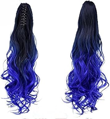55 9 Cm Long Ondule Griffe Dans Sur Queue De Cheval Couleur Ombre Deux Tons Clip En Extensions De Cheveux Bicolore Degrade 1b Blue Amazon Fr Beaute Et Parfum