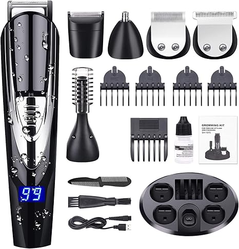Tondeuse multifonctions 12 en 1kit de 12 accessoires comprenant 1 tondeuse en forme de t 1 tondeuse a barbe en forme de u 1 tondeuse pour le nez 1 rasoir 1 tondeuse pour le corps 1 sculpteur 5 peignes pour cheveux ajustables 36912mm 1 brosse de nettoyage. La tondeuse barbe cheveux ne laisse rien au hasard.